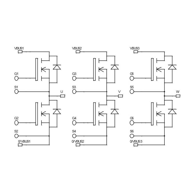 Triple Phase leg MOSFET Power Module - VDSS = 100V - RDSon = 9mOHMS @25°C - ID = 100A @ 80°C