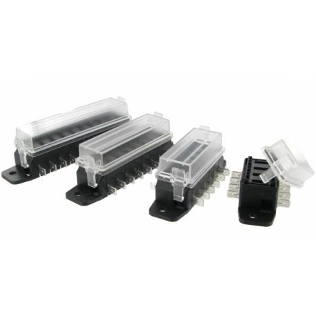 Waterproof fuse holder for ATO 32V fuse type pluggable tongue Available in 4, 6, 8 and 10 channel Independent and isolated channels Current max. by way 40A Transparent cover with seal. Fixing the fuse box by 2 screws M5 Standards SO 8820, SAE J 1284, DIN 72581, UL 248, RoHS