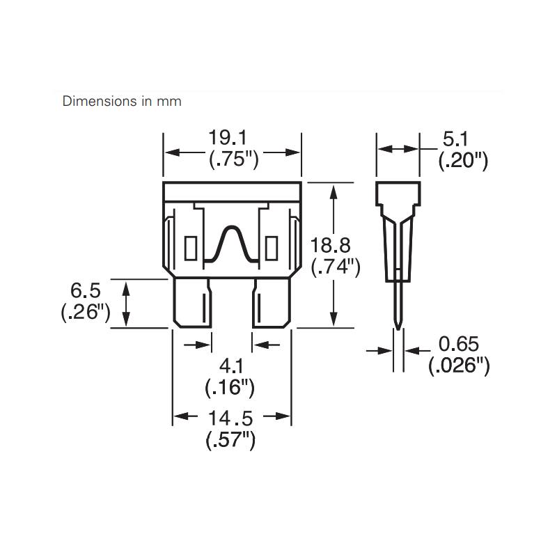 APM / ATMAutomotive Fuses Fuse with rectangular tongue Fast acting and resistant to corrosion Excellent resistance to heat and mechanical shock Rated voltage 32VDC Current range from 1A to 32A Cutoff capacity 1000A to 32V Dimensions 10,9mm × 3,6mm × 16.3 mm Operating temperature -55 to + 125 Standards SO 8820, SAE J 1284, DIN 72581, UL 248, RoHS