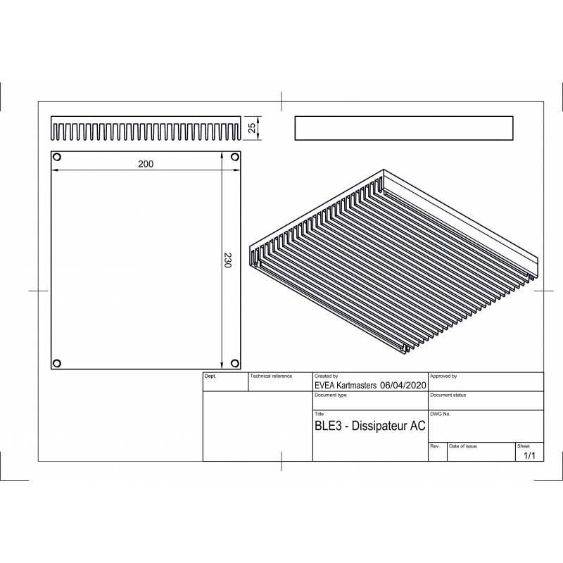 Air cooling heatsink for Zapi Zapi ACE-0, BLE-0, ACE-2 Gen2, BLE-2 Gen2. controllers Include Alimunium heatsink + thermal paste Dimentions 200 mm x 150 mm x 25 mm 29-pass fins Fixing the controller with 4 M6 screws Thermal resistance 0,5°C/W