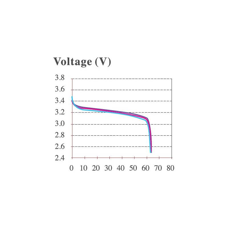 • Nominal voltage of the cell is 3,2 V and the operational voltage is 2,5 - 3,65 V.