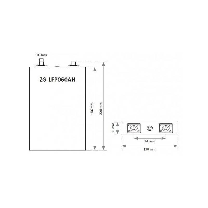 Documentation of the Lithium cell LiFePO4 60Ah 3.2V alu case