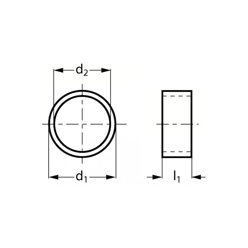Bague entretoise en acier Ep = 17mm D ext = 25mm D int = 19mm