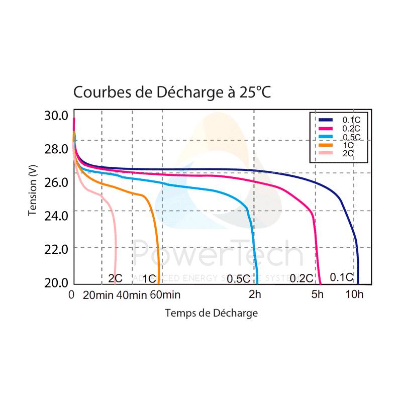 Etant donné qu'une batterie PowerBrick+ paut être déchargée à 100% de sa capacité, une batterie plomb AGM peut être remplacée par PowerBrick+ avec une capacité 2x inférieure à celle de la batterie au plomb (ex: un PowerBrick+ 50Ah remplace une batterie AGM 100Ah).