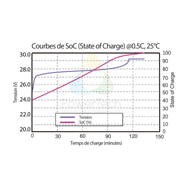 La batterie Lithium PowerBrick + 24V-50Ah a une tension nominale de 51.2V. Elle peut être aisément assemblée en série (jusqu'à 4 batterie en série) et en parallèle (jusqu'à 10 batteries).