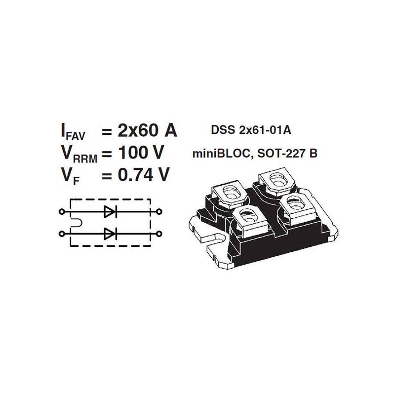 Double diode Schottky, DSS2X61-01A, 120A Double, SOT-227B, 4 broches