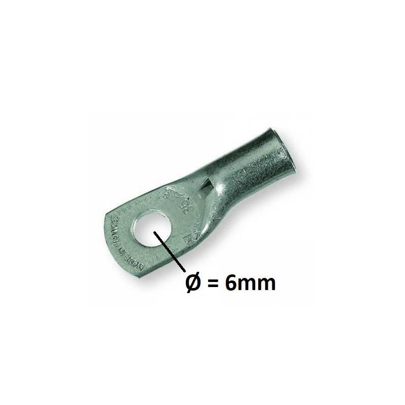 • Cosse tubulaire à œillet droite en cuivre étamée, à sertir ou souder diam. 6 mm