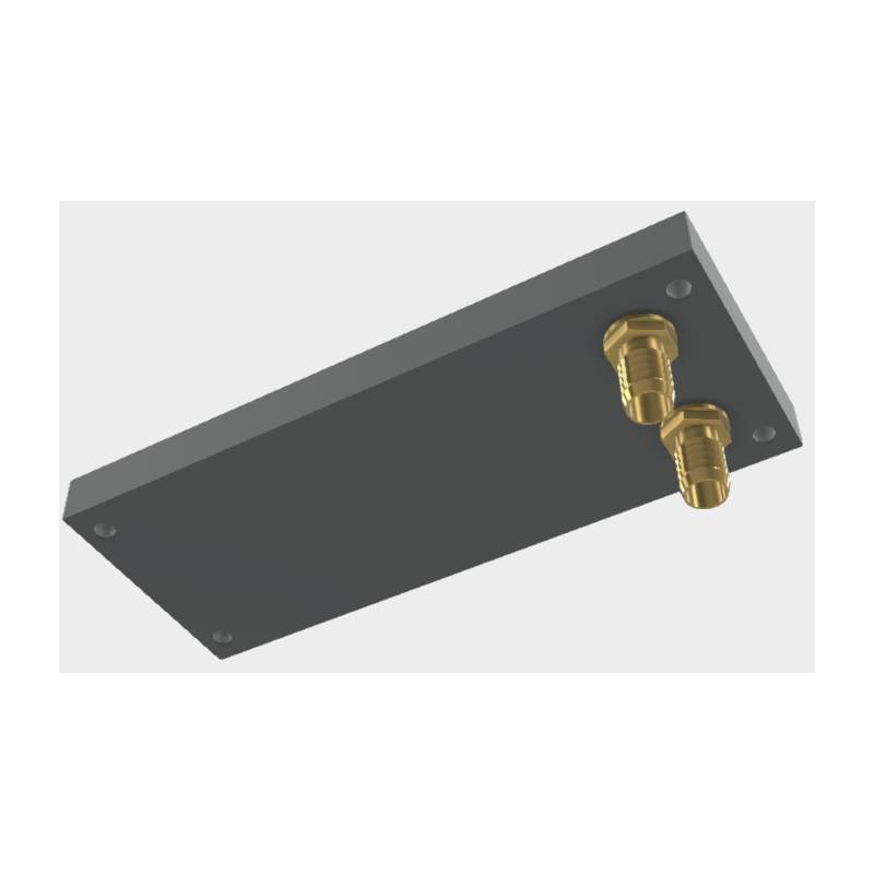 Dissipateur à refroidissement liquide pour variateur Zapi ACE3 et BLE3. 4 canaux tubes de 20mm x 5mm Raccord laiton diam. 10mm Plaque à eau aluminium + joint caoutchouc noir Dimensions 200 mm x 230 mm x 17 mm Diamètre durites entrée/sortie 10mm Flux liquide recommandé max 10l/min Résistance thermique 0,03°C/W