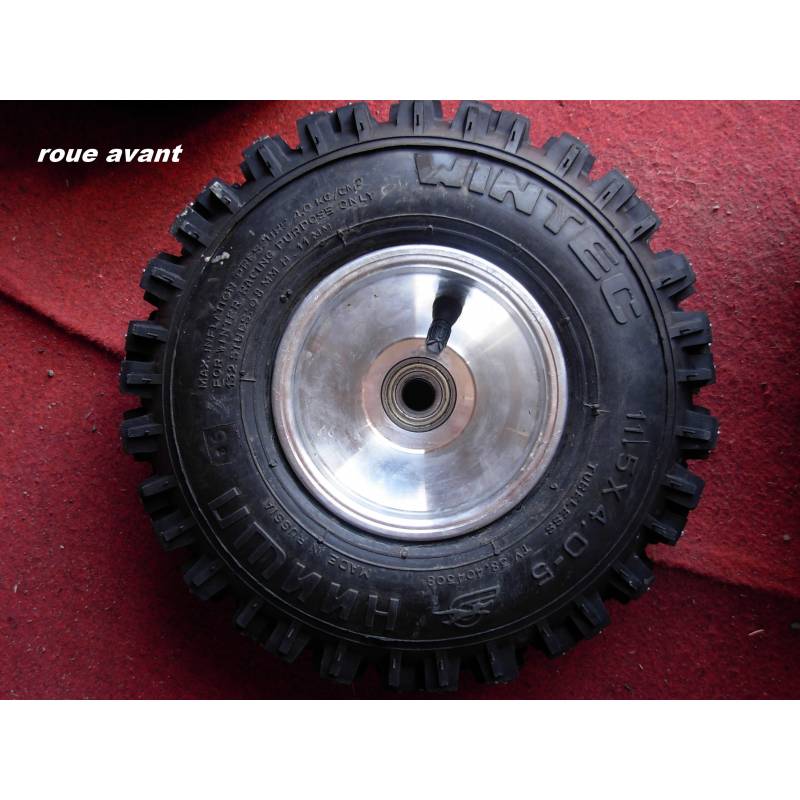 Roue avant à pneu crampons cloutés spécial exploitation karting sur glace.