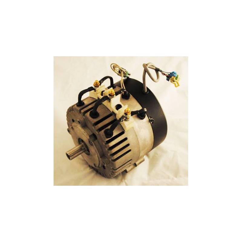 Designed for long life. No brush maintenance. The motor is 92% efficient at voltages between 24 to 72 VDC. Continuous current of 125 amps AC (180 Amps DC into the motor control). This is a 3-phase, Y-connected Permanent Magnet Synchronous Motor with an axial air gap and 3 Hall sensors at 120 degrees electrical timing. It has two stators with a rotor in the center.