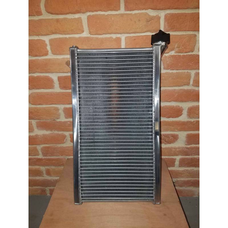 Radiateur large en aluminium avec une contenance 1L de liquide de refroidissement. Il possède 47 canaux horizontaux pour un échange thermique maximum et donc un rendement moteur idéal. Très leger, seulement 2,2kg. Plusieurs points de fixation sont disponible pour un montage facile.